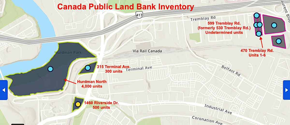 - Located just south of Highway 417 and west of Riverside Drive, this parcel was added to the Canada Public Land Bank to accelerate housing.